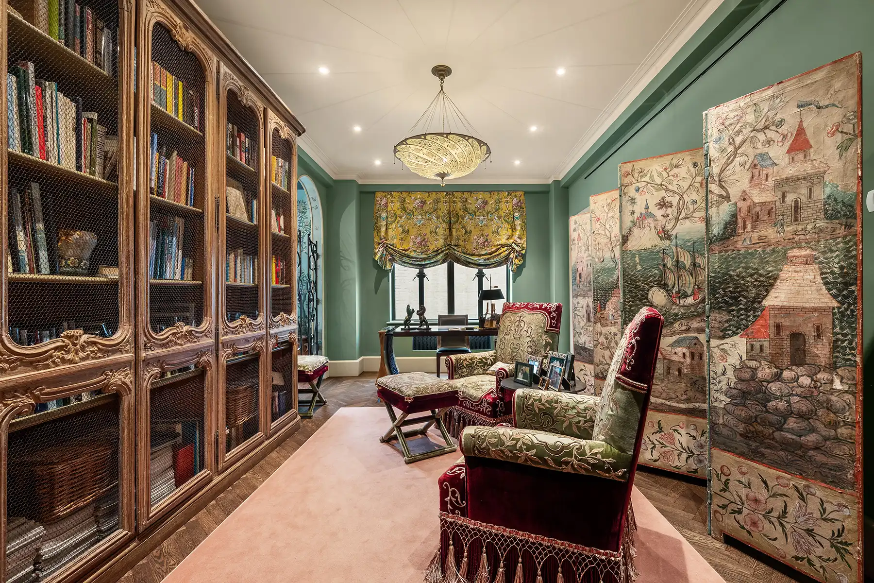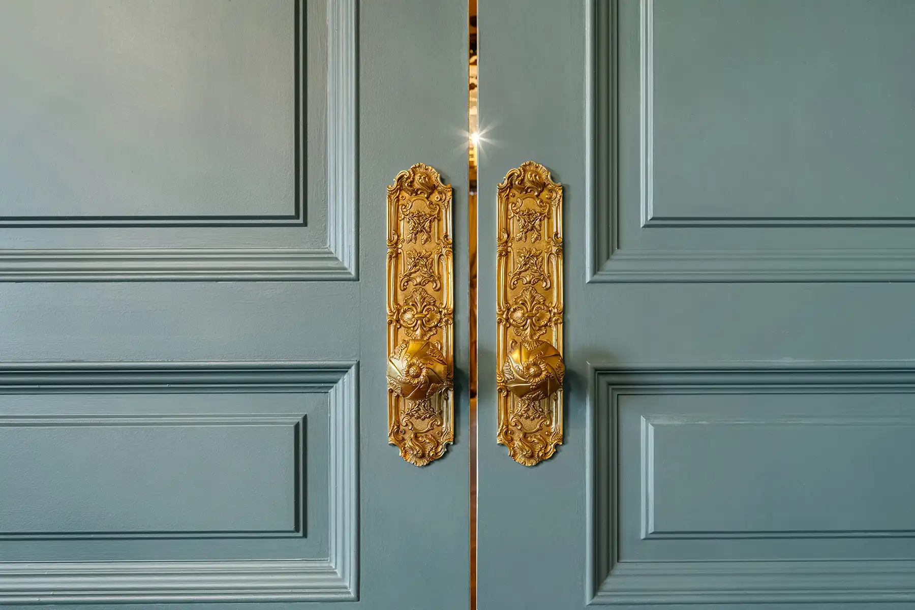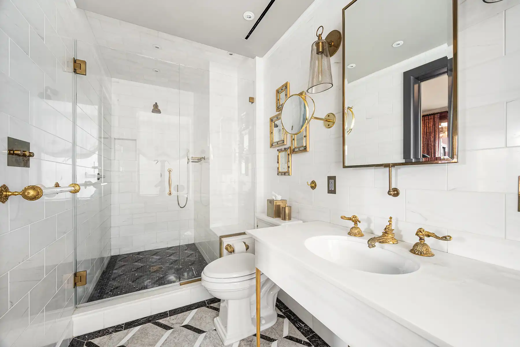 Throughout the apartment, hardware and fixtures by P.E. Guerin—the oldest decorative hardware foundry in America—bring a layer of luxury rarely seen today. From door hinges and handles to bathroom fittings, faucets, and accessories, every detail gleams with the hand-finished patina of true craftsmanship.